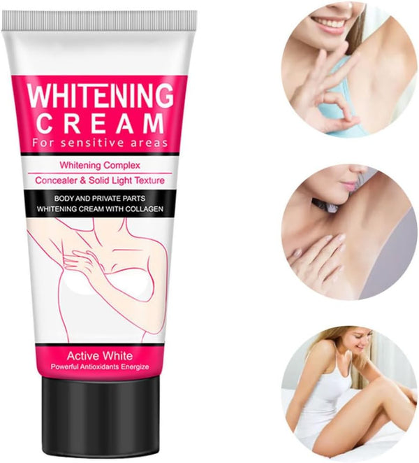 Esta crema ilumina manchas oscuras en axilas, codos y rodillas. Su fórmula suave restaura la confianza al aclarar áreas sensibles sin irritaciones.