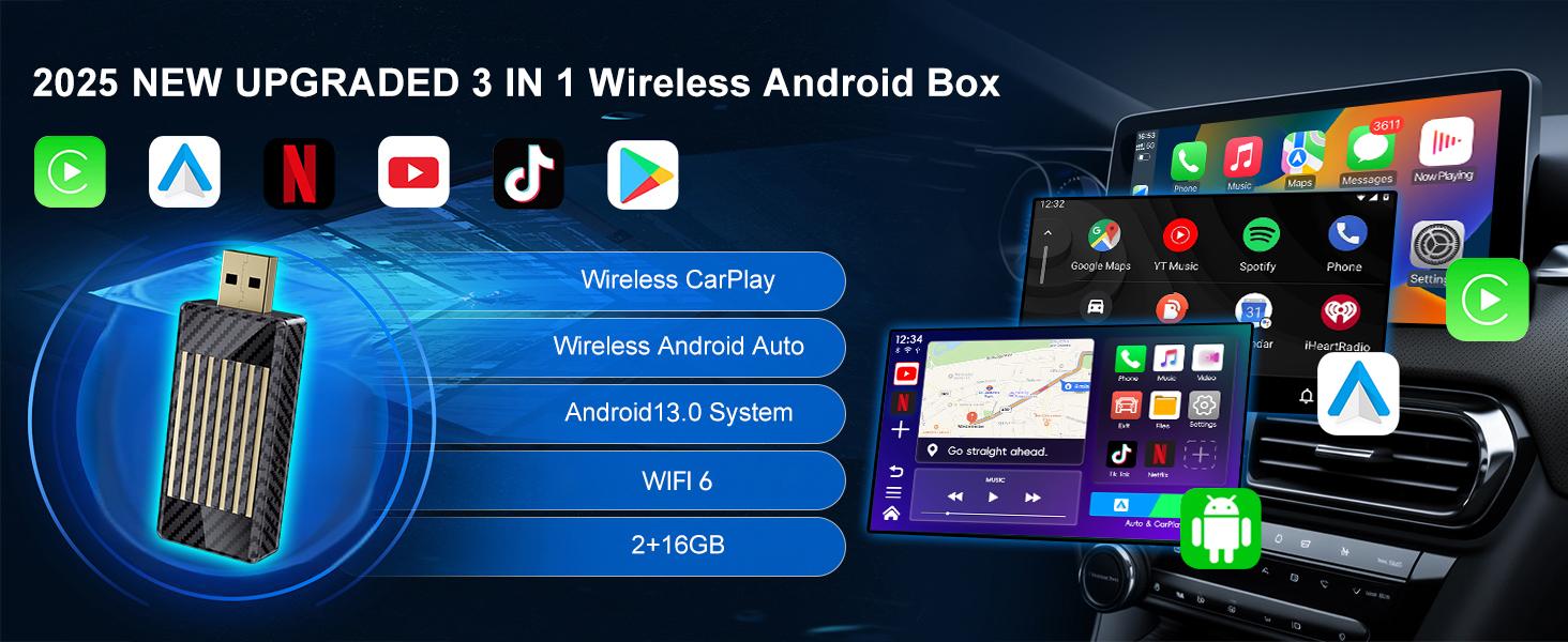 Mini AI Box – Dispositivo 3 en 1 inalámbrico con CarPlay y Android Auto