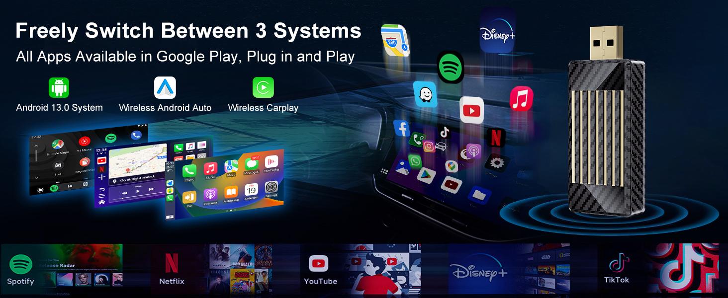 El dongle CarPlay inalámbrico para iPhone y Apple viene con Netflix y YouTube integrados.